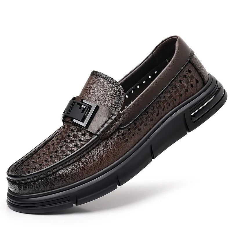 2025 Summer Hallow Casual Leather Shoes for Men Fashion New Designer Solid Color Luxury Shoes Male British Business Shoe Man