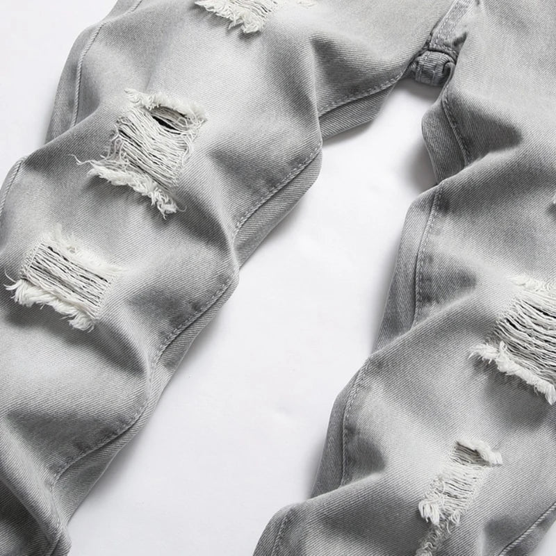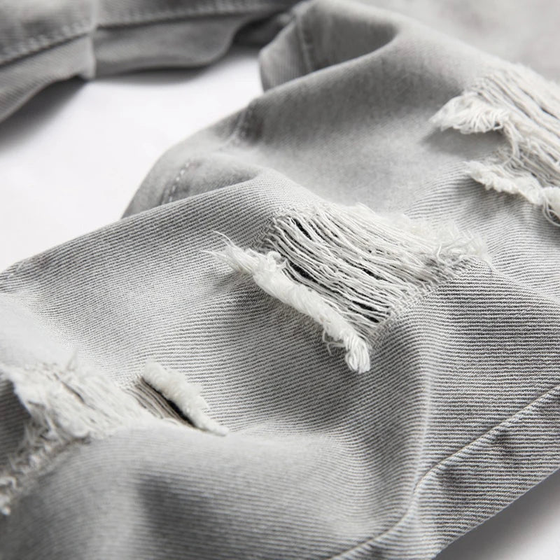 Boys' Gray Straight-leg Ripped Jeans Children Washed Distressed Stretch Denim Trousers Big Kids Casual Pants 5-16y