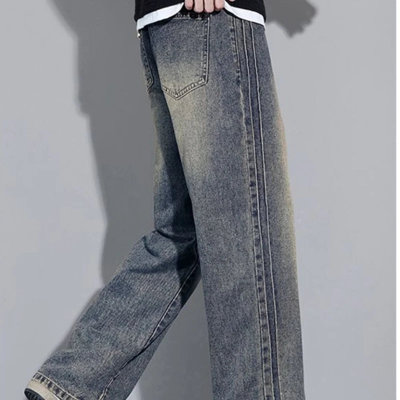 Elastic Loose Straight Jeans Men's Wide Legged Denim Pants Casual Trousers Korean Style Sportswear Clothing Jeans Men Pants