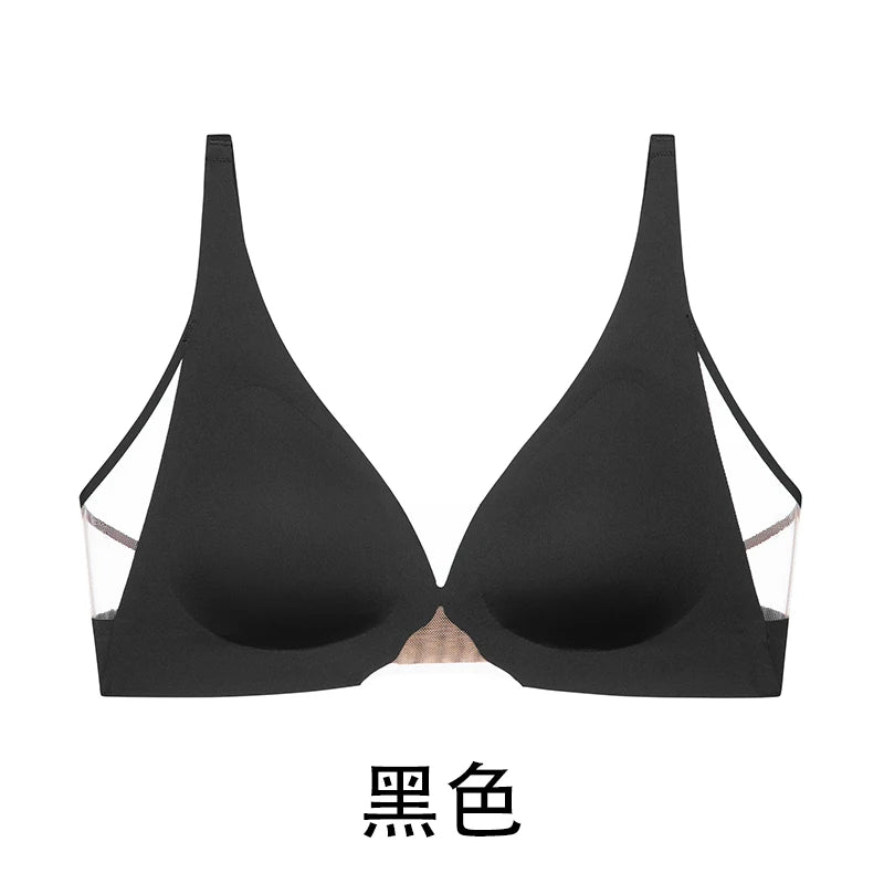 Leopard Print Sexy Hollow Mesh Backless Bra Women's Seamless Breathable Thin Sensation Gathering Underwear Wireless Bra