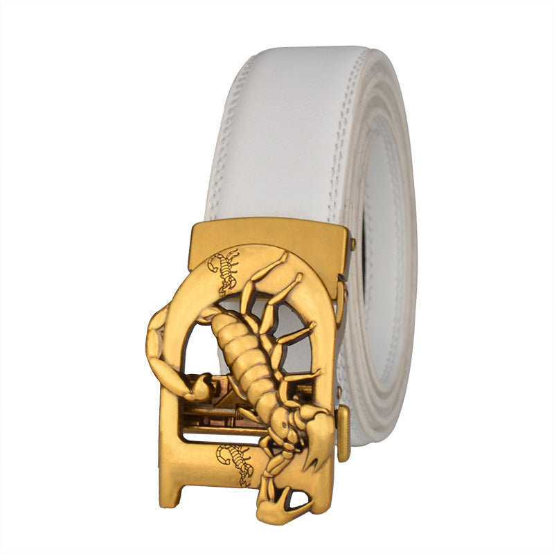 Men's Automatic Leather Bronze Vintage Buckle Cowhide Belt