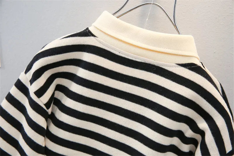 New Spring Causal Suit Kids Boys Girls Cartoon Strips T Shirt Pants 2pcs/Set Children Clothing Kids Infant Sportswear 0-5 Years