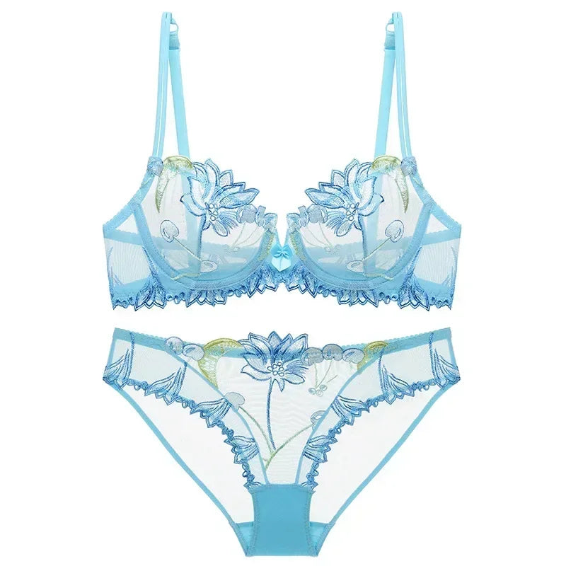 Sexy Pure Desire Lace Bra Set Women French Small Chest Gathering Ultra Thin Underwear Female Romantic Embroidery Intimates Suit
