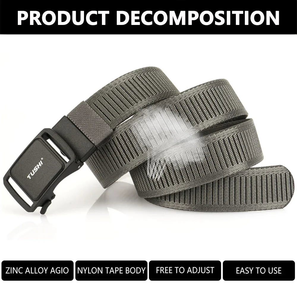 TUSHI New 3.8cm Tactical Belt for Men 1200D Thick Nylon Casual Belt Alloy Automatic Buckle Tactical outdoor Elastic Belt Male