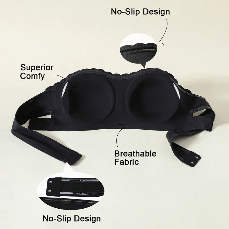 Women's Sexy Strapless Wavy Trim Bandeau Bra Seamless Backless With Side Clasp Ice Silk Top Women Anti-slip Off-shoulder Bra