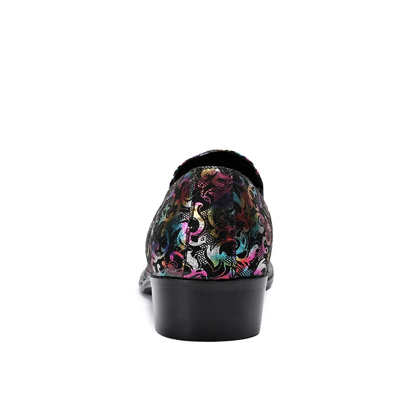 Zapatoz De Hombre Fashion Print Men Formal Shoes Iron Round Toe Slip On Genuine Leather For Men Dress Wedding Oxford Shoes